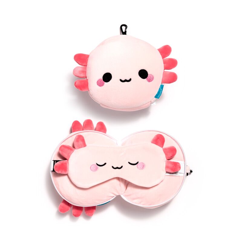 Relaxeazzz Adoramals Maddie the Axolotl Travel Pillow & Eye Mask