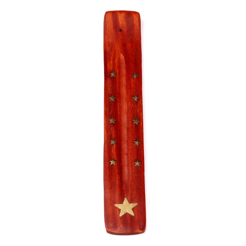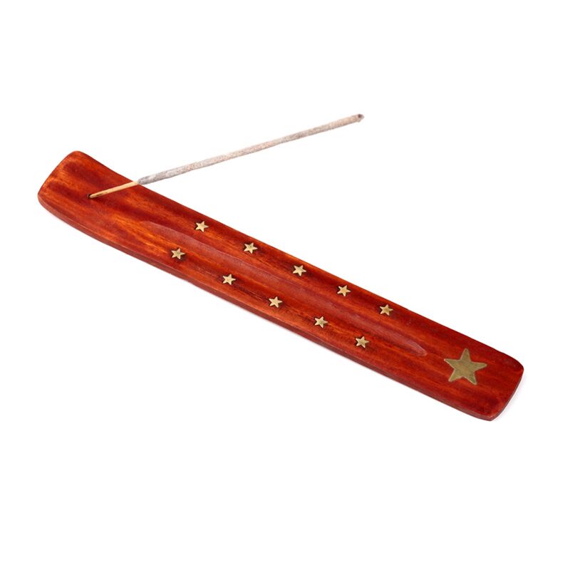 Mango Wood Ashcatcher Incense Stick Burner with Brass Star Inlay