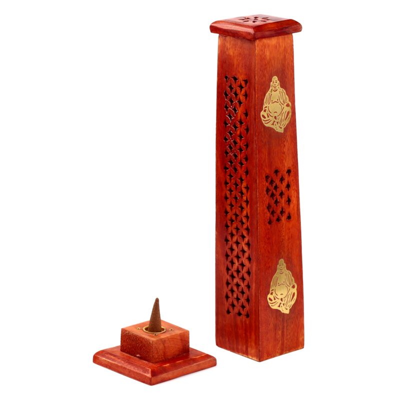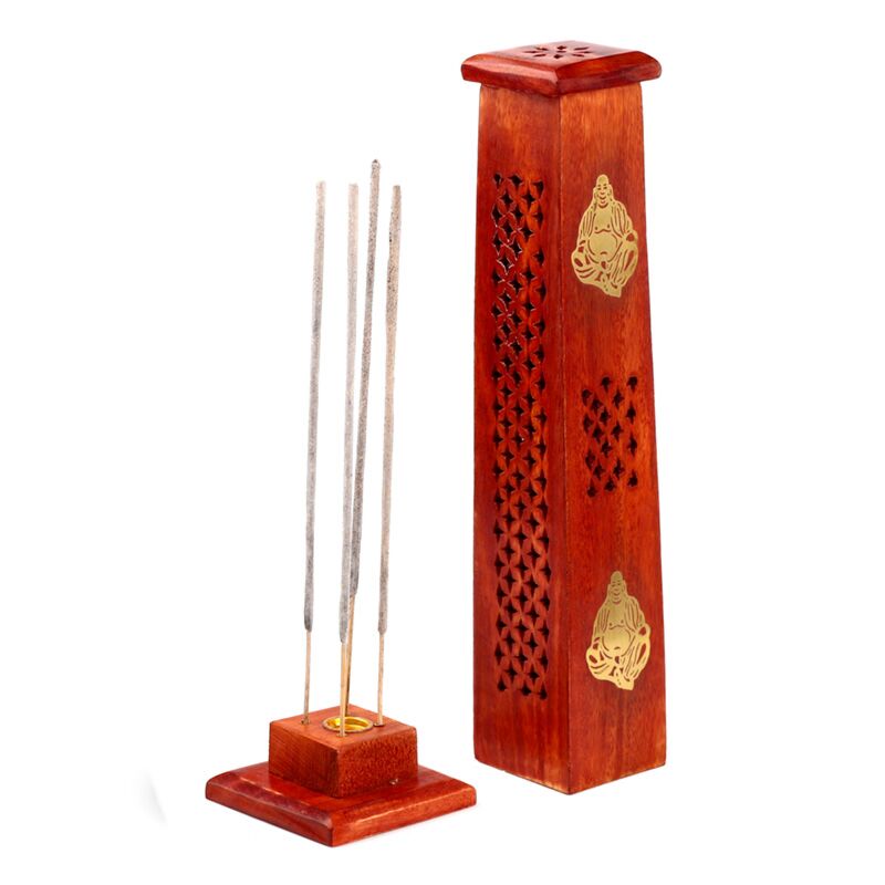 Mango Wood Ashcatcher Incense Tower Burner Chinese Buddha