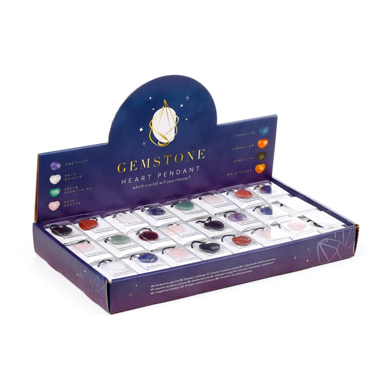 https://www.puckator-wholesale.eu/min01-healing-stone-gemstone-heart-shaped-pendant-necklace.htmlMIN01Healing Stone Gemstone Heart Shaped Pendant Necklace<p>Healing Stone Gemstone Heart Shaped Pendant Necklace</p><ul><li><strong>Material: </strong>Gemstones, Metal (Iron/Zinc Alloy/Brass), Cord</li><li><strong>Mix in Pack: </strong>(Can Vary) 3 Zebra Amethyst, 9 Rose Quartz, 4 Quartz, 7 Gold Stone, 8 Hematite, 7 Green Aventurine, 3 Carnelian, 7 Sodalite</li><li><strong>Product Information: </strong>This set contains natural gemstones which can vary in tone and colour from those in the photo.</li></ul><p><strong>Product Resources:</strong></p><ul><li><strong>Need more information about buying from Puckator EU?</strong> Visit our advice centre and take a look at our <a href="/advice-centre" target="_blank" title="Puckator EU Customer Advice Centre Information">information guide.</a></li></ul>https://www.puckator-wholesale.eu/media/catalog/product/M/I/MIN01_001_1772637496.jpg1.91instock2.31.91170.39Puckator000https://www.puckator-wholesale.eu/media/catalog/product/M/I/MIN01_001_1772637496.jpg19502/Mineral Stones & Crystal Gifts/Wholesale Best Price Offer - Limited Time Promotion/Carton Price Wholesale Promotion - Limited Time Offer/Seasonal Promotions2010-04-19T15:50:18+0000