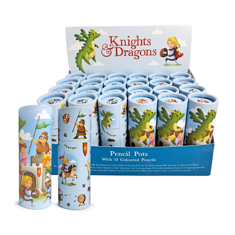 Knights & Dragons Pencil Pot with 12 Colouring Pencils