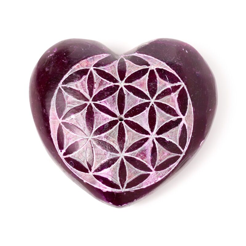 Carved Soapstone Chakra Heart Flower of Life Ashcatcher Incense Stick Burner