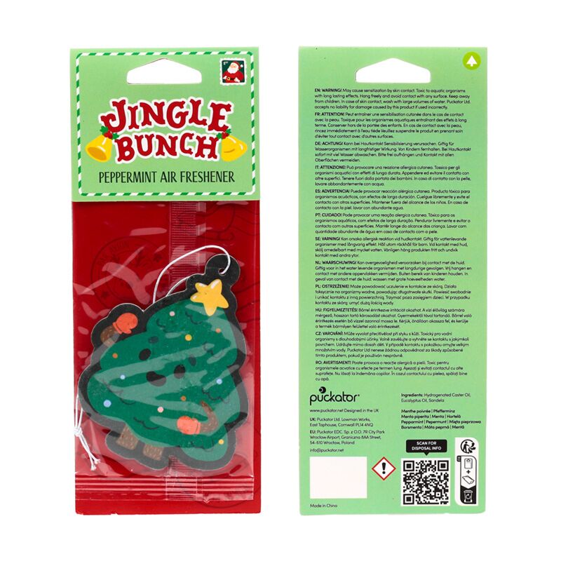 https://www.puckator-wholesale.eu/xairf173-peppermint-jingle-bunch-christmas-tree-air-freshener.htmlXAIRF173Peppermint Jingle Bunch Christmas Tree Air Freshener<p>Peppermint Jingle Bunch Christmas Tree Air Freshener</p><ul><li><strong>Material:</strong> Card, Polypropylene, Elastic, Absorbant Paper, and Fragrance</li><li><strong>Fragrance:</strong> Peppermint</li><li><strong>Safety Information:</strong> Keep away from children. Full safety and fragrance information is shown on the product packaging. Do not rest or lean against any surface as the oils in the air freshener can cause staining or damage.</li><li><strong>Seasonal Holiday / Festive Occasion: </strong>Christmas</li></ul><p><strong>Product Resources:</strong></p><ul><li><strong>Need more information about buying from Puckator EU?</strong> Visit our advice centre and take a look at our <a href="/advice-centre" target="_blank" title="Puckator EU Customer Advice Centre Information">information guide.</a></li></ul>https://www.puckator-wholesale.eu/media/catalog/product/X/A/XAIRF173_001_1759394387.jpg0.55outofstock0.550.5500Puckator000https://www.puckator-wholesale.eu/media/catalog/product/X/A/XAIRF173_001_1759394387.jpg1660117193178081812618127194091941019411/Hanging Car Air Fresheners/Christmas Decorations & Collectables/Festive Body & Fragrance Gifts2025-02-14T06:50:24+0000